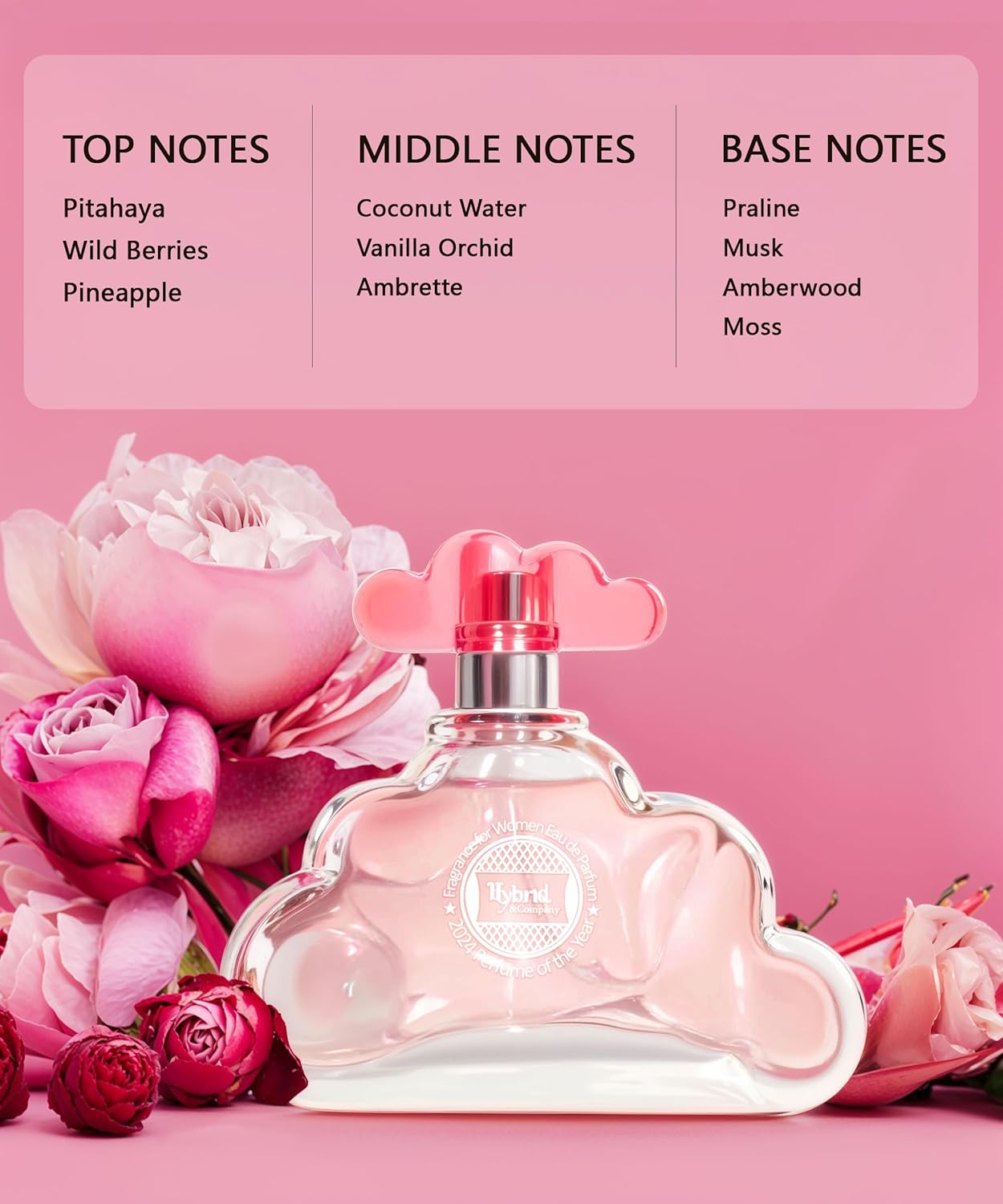 - Perfume note:Top notes are Pitahaya, Wild Berries and Pineapple; middle notes are Coconut Water, Vanilla Orchid and Ambrette; base notes are Praline, Musk, Amberwood and Moss.